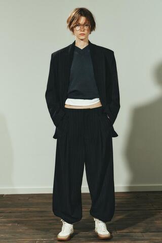 Брюки-джоггеры со средней посадкой и шлевками. Боковые карманы и имитация прорезных карманов сзади. Складки спереди. Эластичные манжеты. Застежка на молнию, внутреннюю пуговицу и металлический крючок.