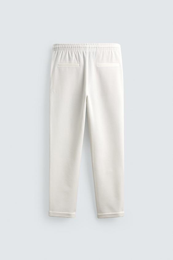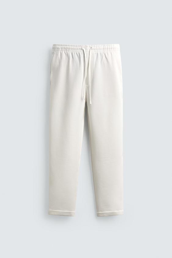 ZARA БРЮКИ-ДЖОГГЕРЫ NON IRON КОМФОРТНОЙ ПОСАДКИ, ЖЕЛТОВАТО-БЕЛЫЙ