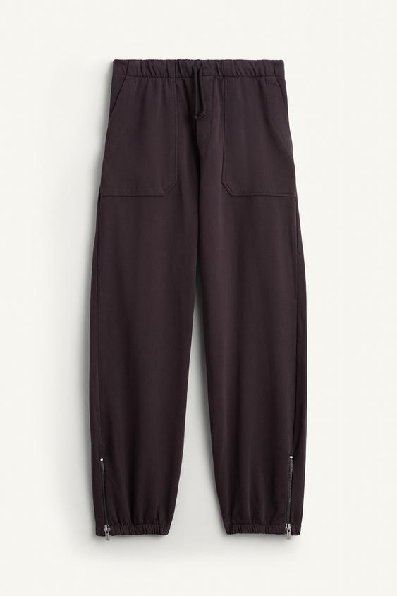 ZARA БРЮКИ-ДЖОГГЕРЫ ПРИТАЛЕННОГО СИЛУЭТА, БУРГУНДИ