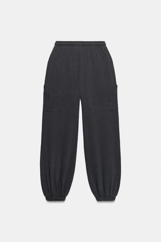 ZARA БРЮКИ-ДЖОГГЕРЫ С КАРМАНАМИ, СВИНЦОВЫЙ