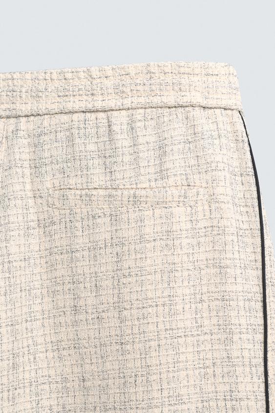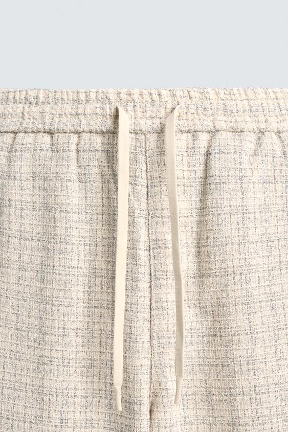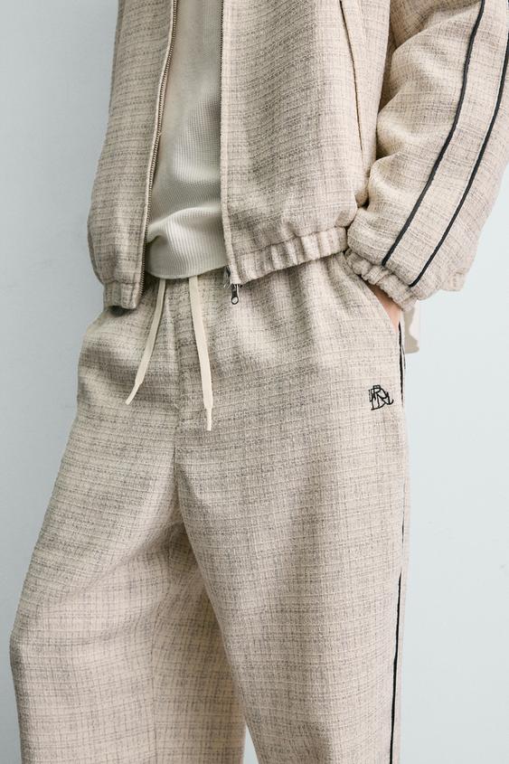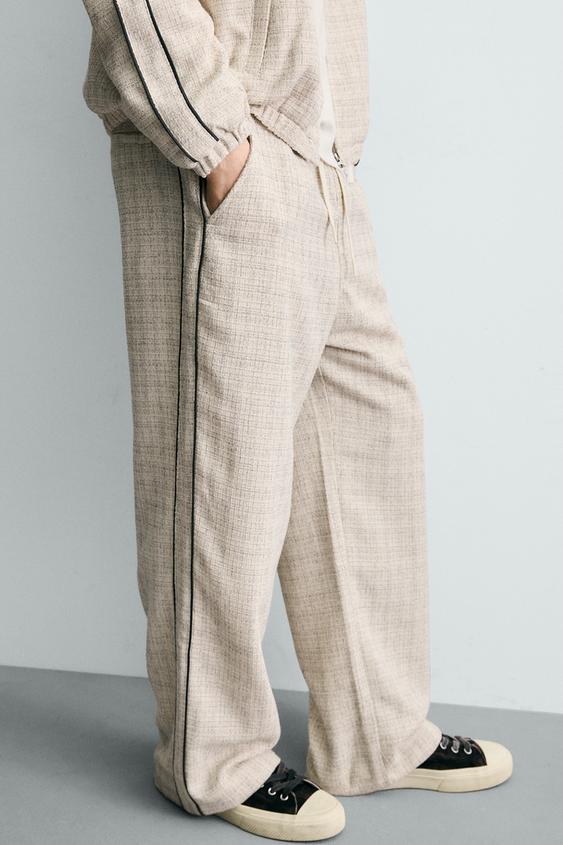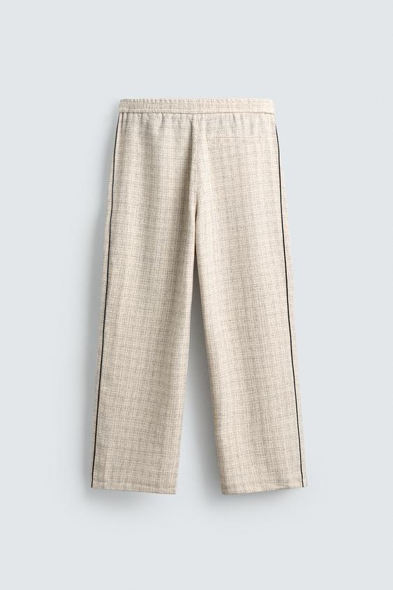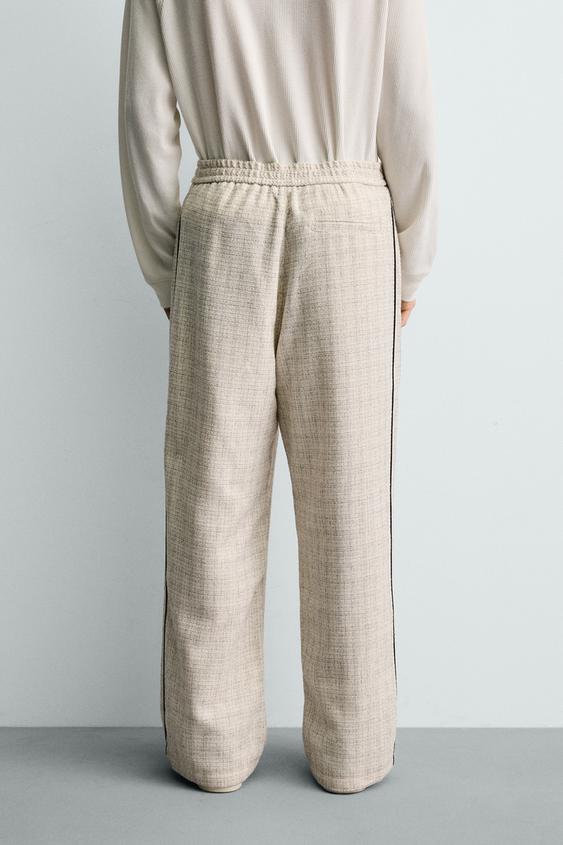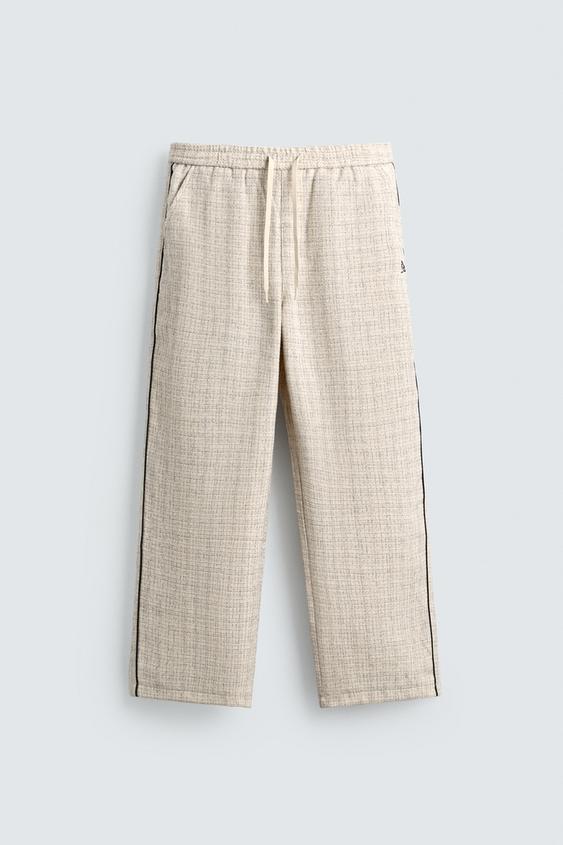 ZARA БРЮКИ-ДЖОГГЕРЫ С КОНТРАСТНЫМИ ЛАМПАСАМИ, ЭКРЮ