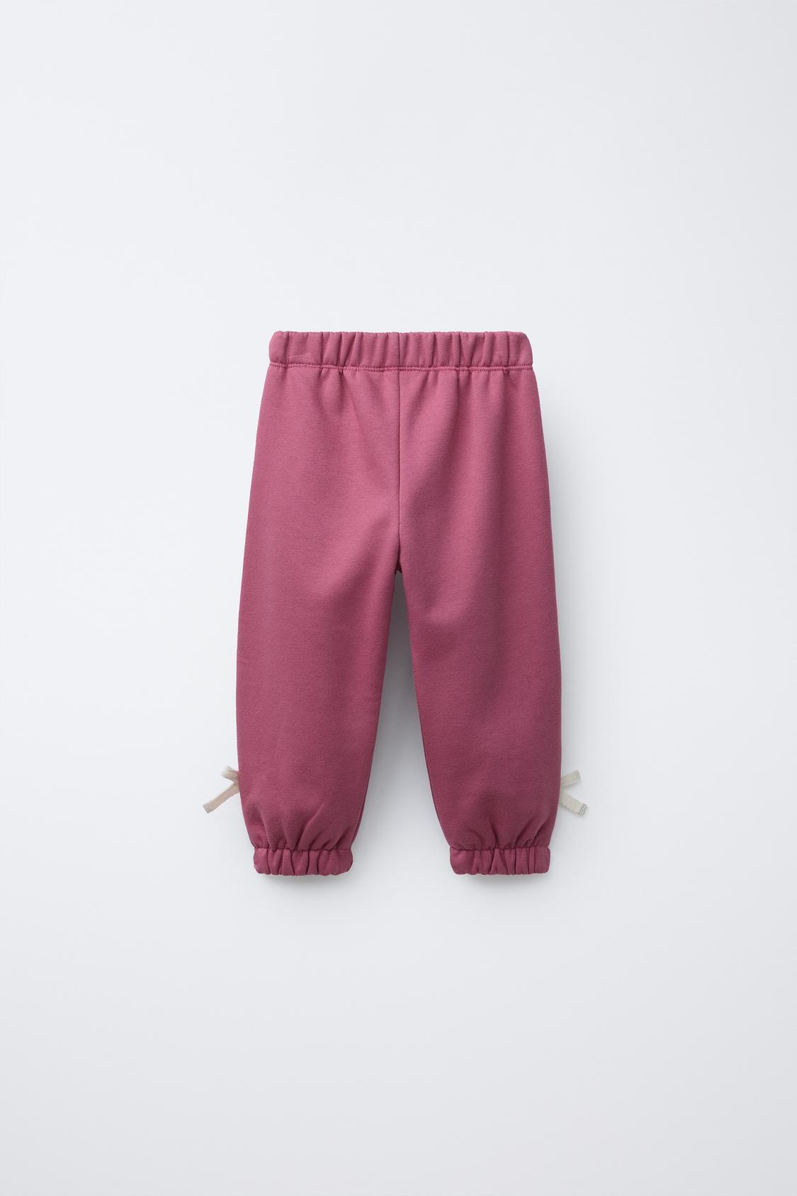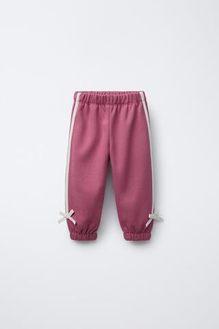 ZARA БРЮКИ-ДЖОГГЕРЫ С ЛАМПАСАМИ И БАНТОМ, МАЛИНОВЫЙ