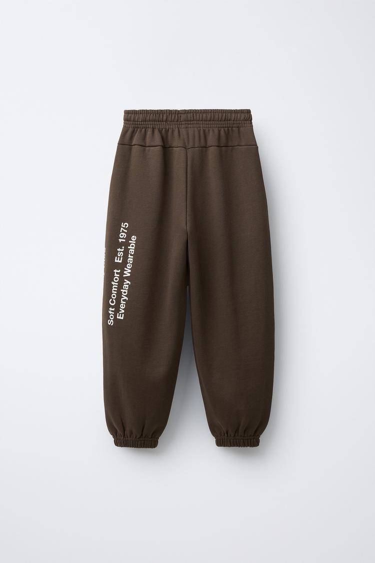 ZARA БРЮКИ-ДЖОГГЕРЫ С НАДПИСЯМИ, КОРИЧНЕВЫЙ