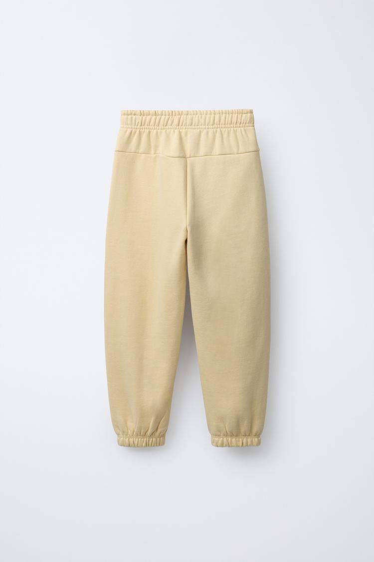 ZARA БРЮКИ-ДЖОГГЕРЫ С НАДПИСЯМИ, ЦВЕТ СЛИВОЧНОГО МАСЛА