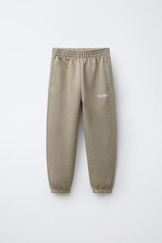 ZARA БРЮКИ-ДЖОГГЕРЫ С НАДПИСЬЮ, БЕЖЕВЫЙ