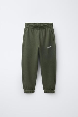 ZARA БРЮКИ-ДЖОГГЕРЫ С НАДПИСЬЮ, ЗЕЛЕНЫЙ
