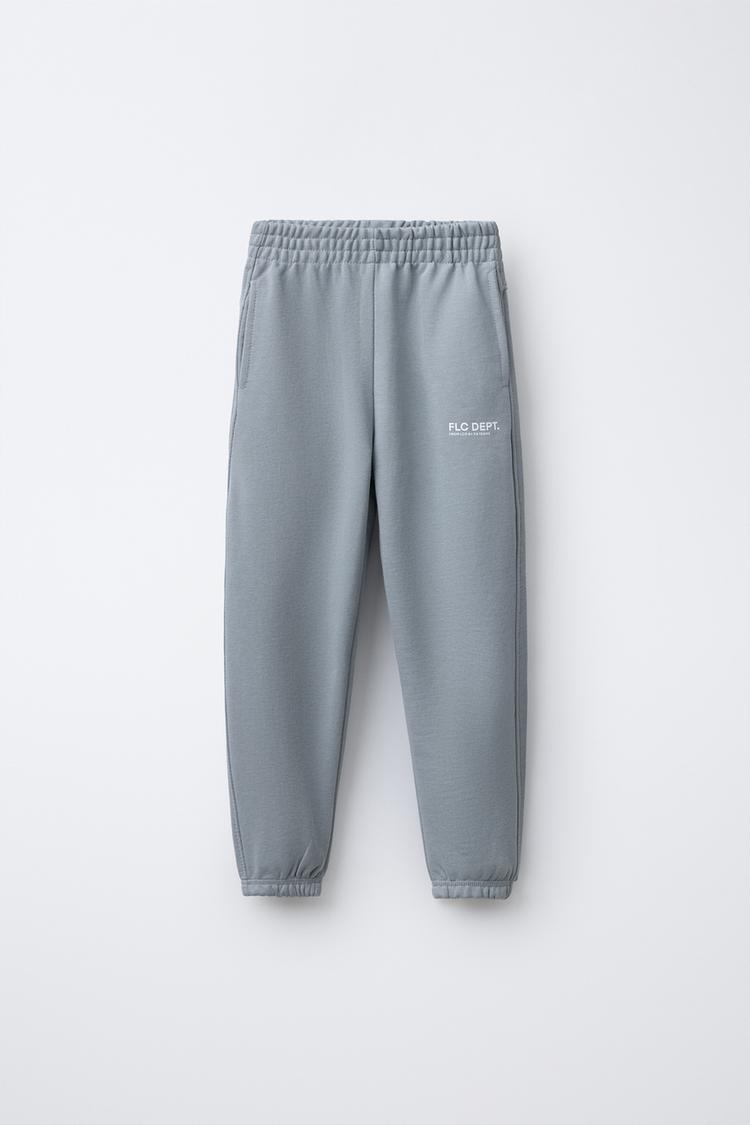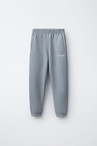 ZARA БРЮКИ-ДЖОГГЕРЫ С НАДПИСЬЮ, ЖЕМЧУЖНО-СЕРЫЙ