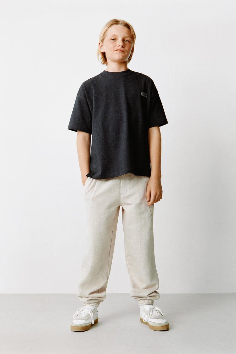 ZARA БРЮКИ-ДЖОГГЕРЫ С НАШИВКОЙ, ПЕСОЧНЫЙ