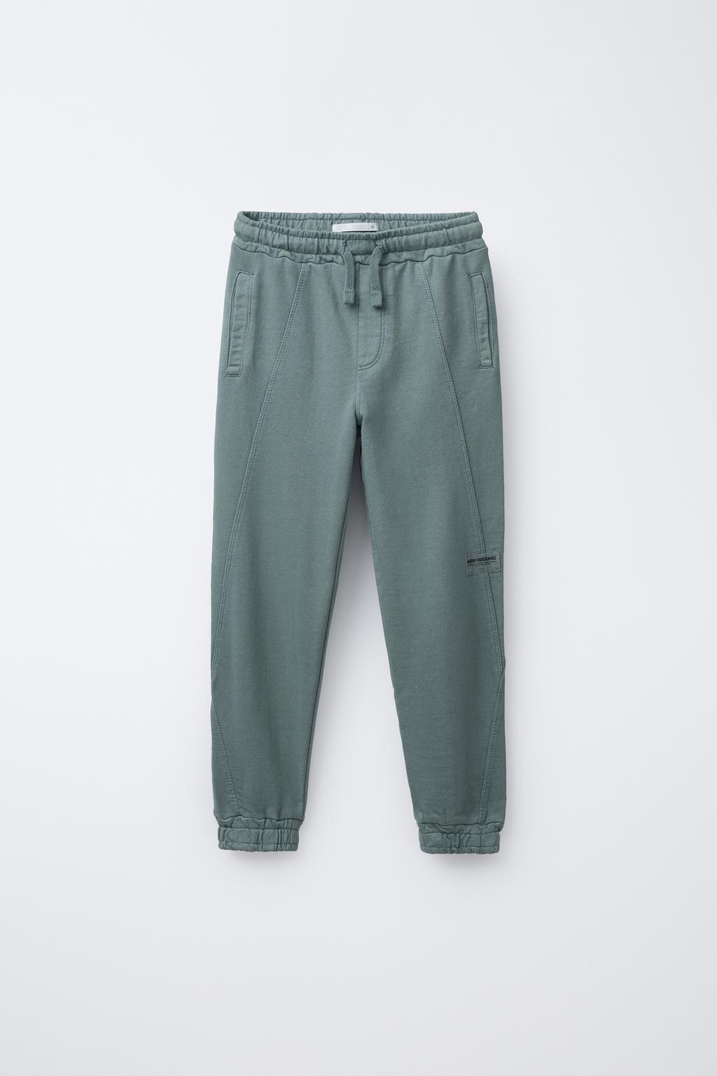 ZARA БРЮКИ-ДЖОГГЕРЫ С НАШИВКОЙ, ЗЕЛЕНОВАТО-СИНИЙ