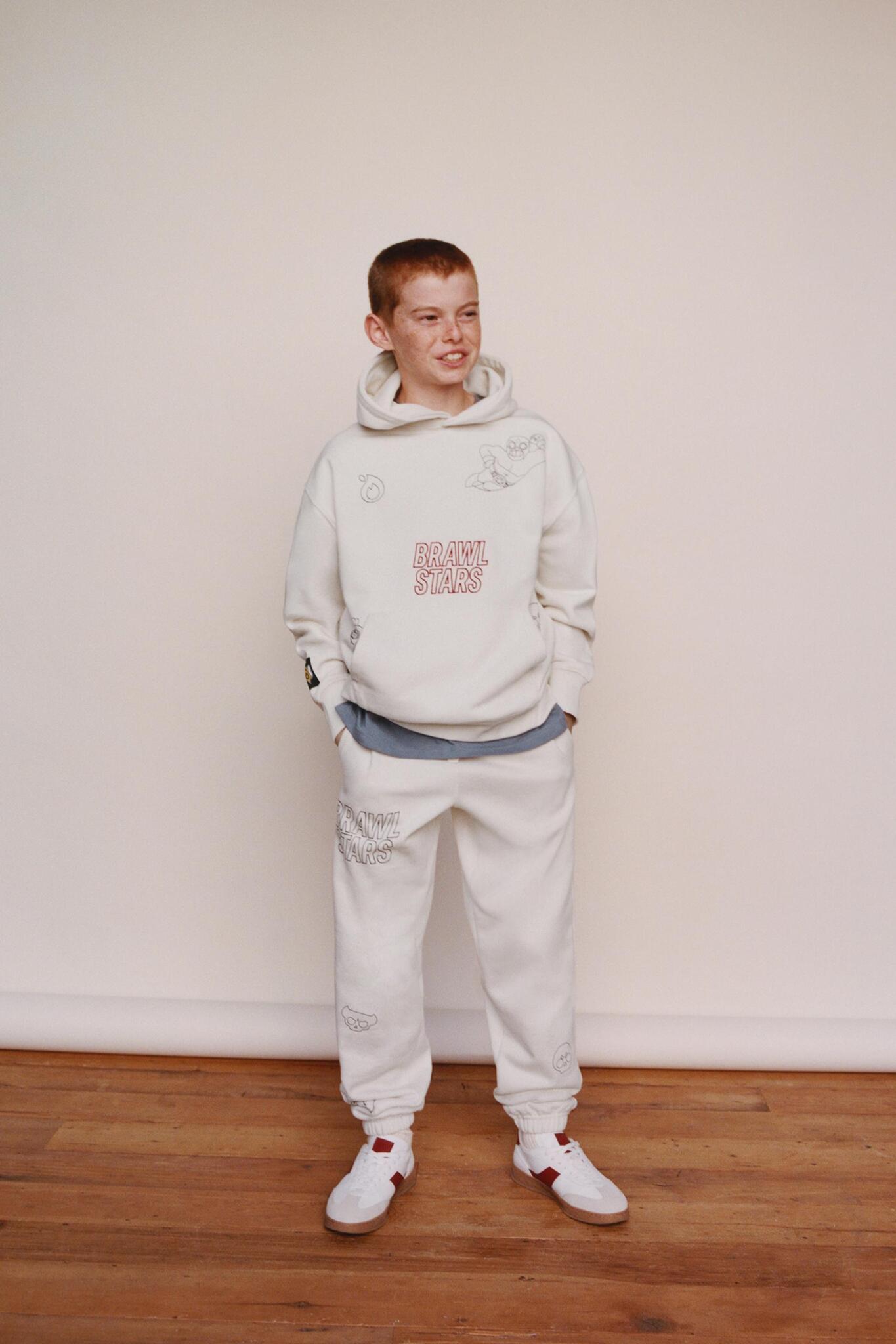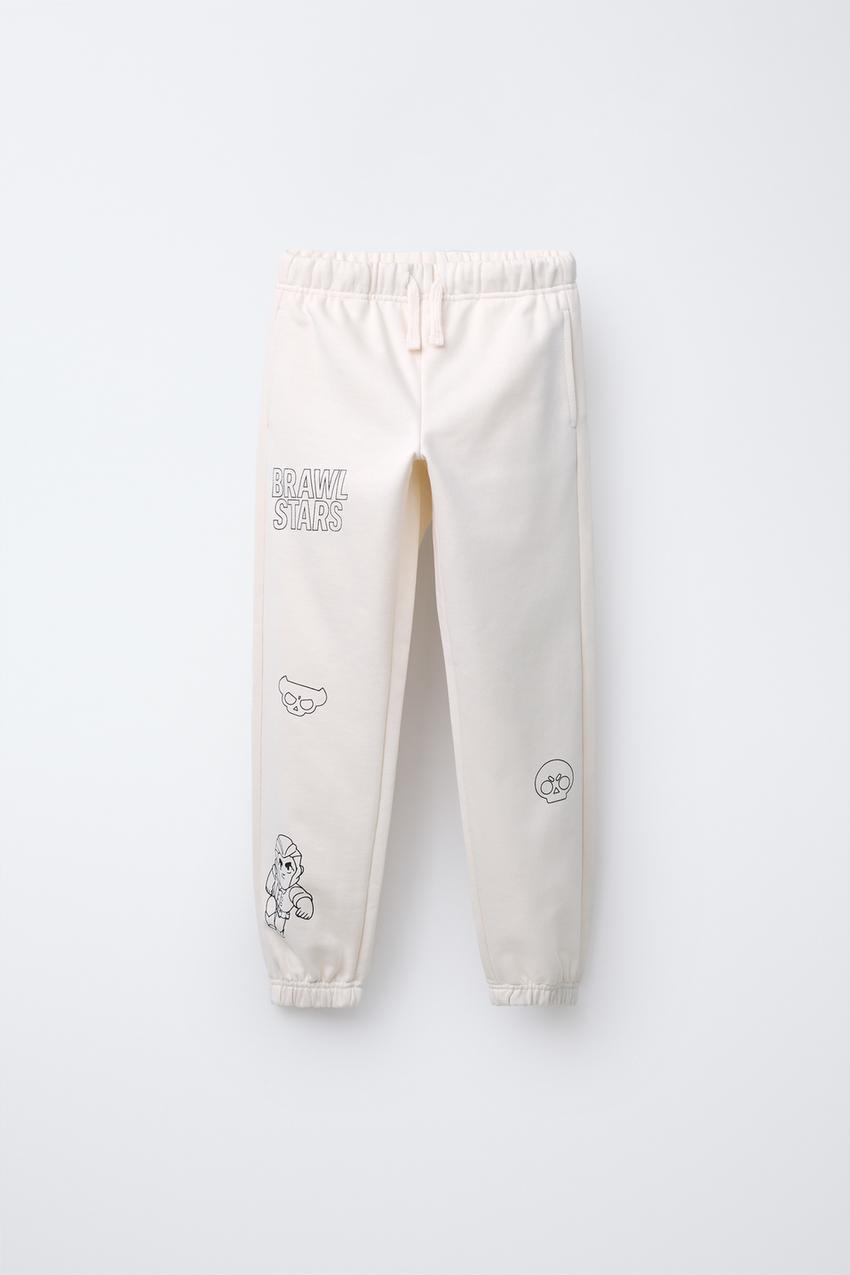 ZARA БРЮКИ-ДЖОГГЕРЫ С ПРИНТОМ BRAWL STAR© И НАДПИСЬЮ ERS FIT, СВЕТЛЫЙ ЭКРЮ