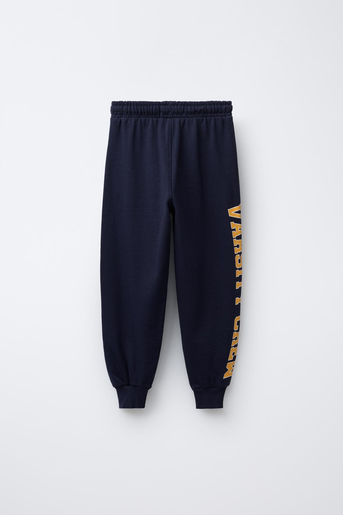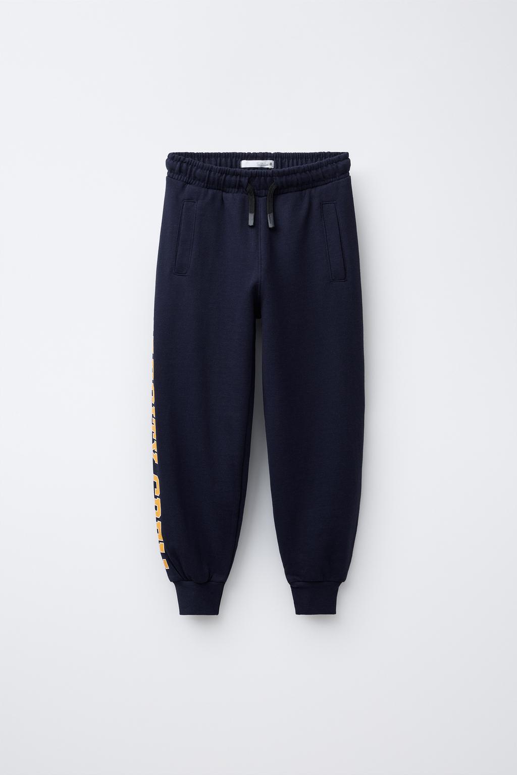 ZARA БРЮКИ-ДЖОГГЕРЫ С ТЕКСТОВЫМ ПРИНТОМ, МОРСКОЙ СИНИЙ
