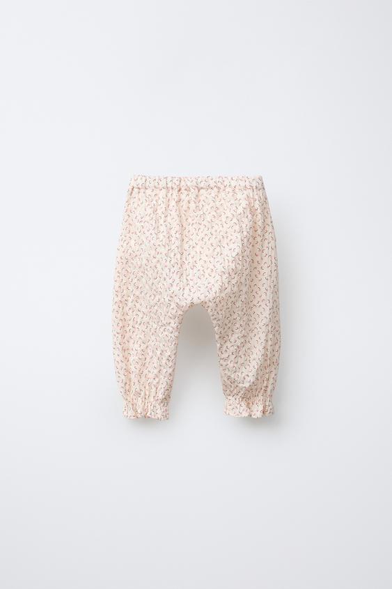 ZARA БРЮКИ-ДЖОГГЕРЫ С ЦВЕТОЧНОЙ ТЕКСТУРОЙ, ЭКРЮ