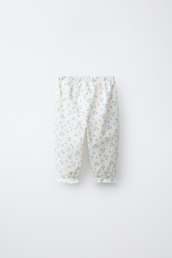 ZARA БРЮКИ-ДЖОГГЕРЫ С ЦВЕТОЧНЫМ УЗОРОМ, ЭКРЮ