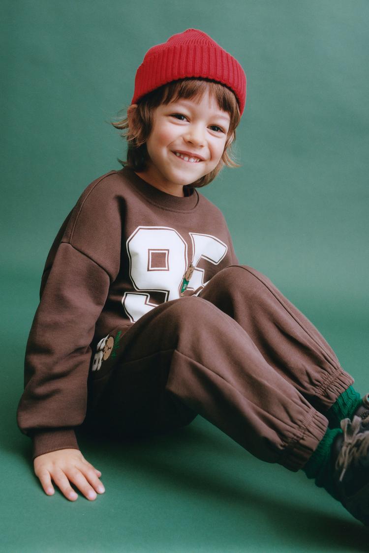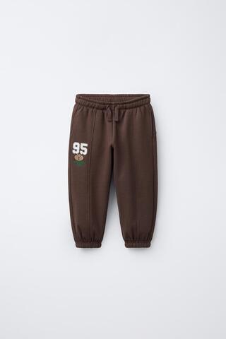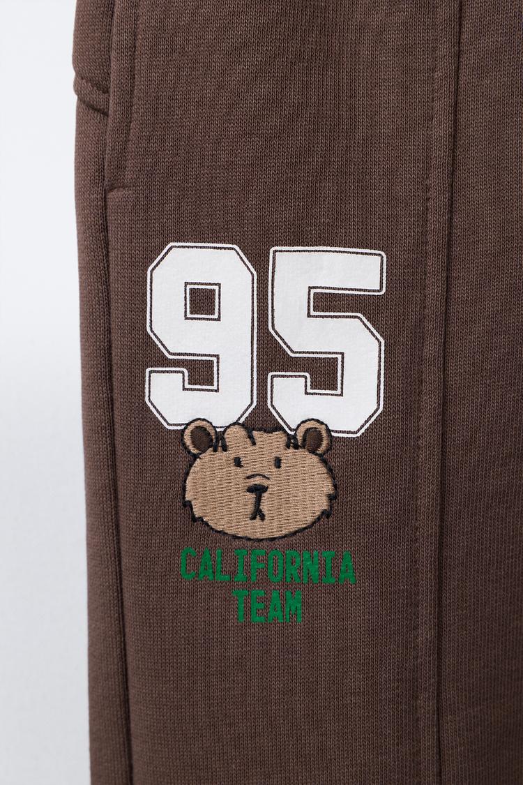 ZARA БРЮКИ-ДЖОГГЕРЫ С ВЫШИВКОЙ, КОРИЧНЕВЫЙ