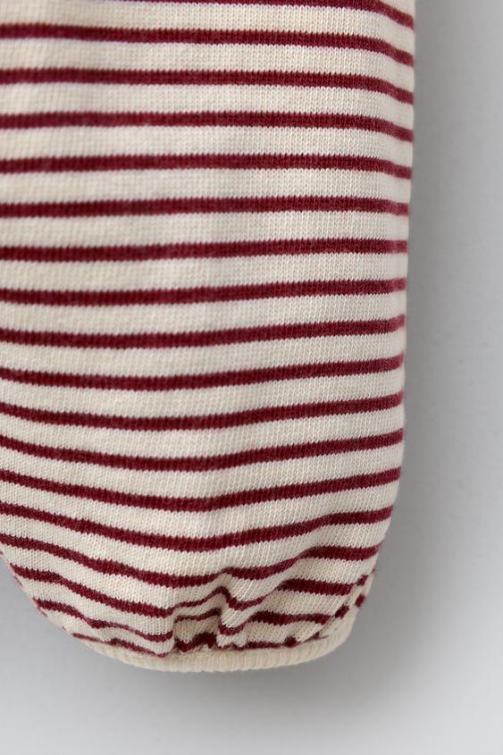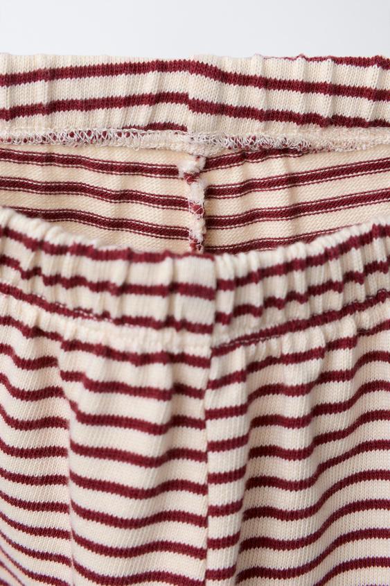 ZARA БРЮКИ-ДЖОГГЕРЫ В ПОЛОСКУ, ЭКРЮ/КРАСНЫЙ