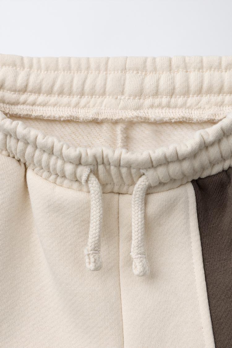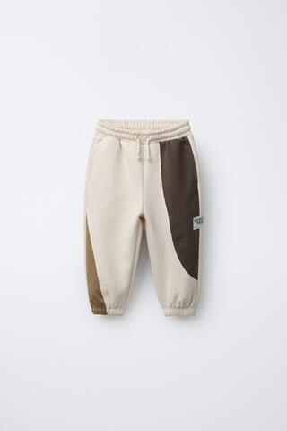 ZARA БРЮКИ-ДЖОГГЕРЫ В СТИЛЕ КОЛОР-БЛОК С НАШИВКОЙ, СВЕТЛО-БЕЖЕВЫЙ