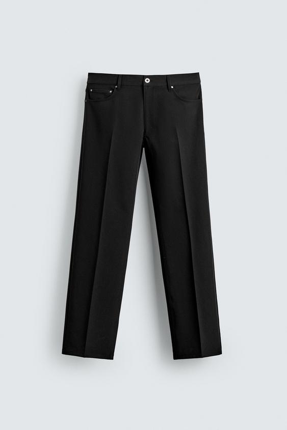 ZARA БРЮКИ FLARE FIT ИЗ РЕЛЬЕФНОЙ ТКАНИ, ЧЕРНЫЙ