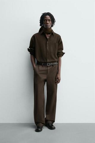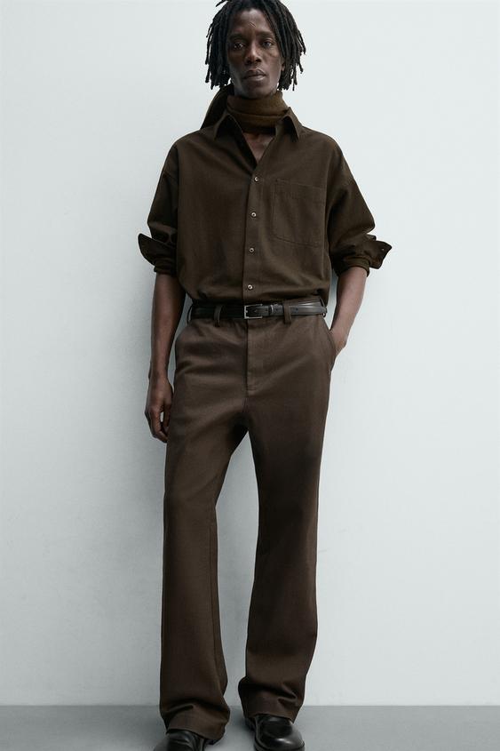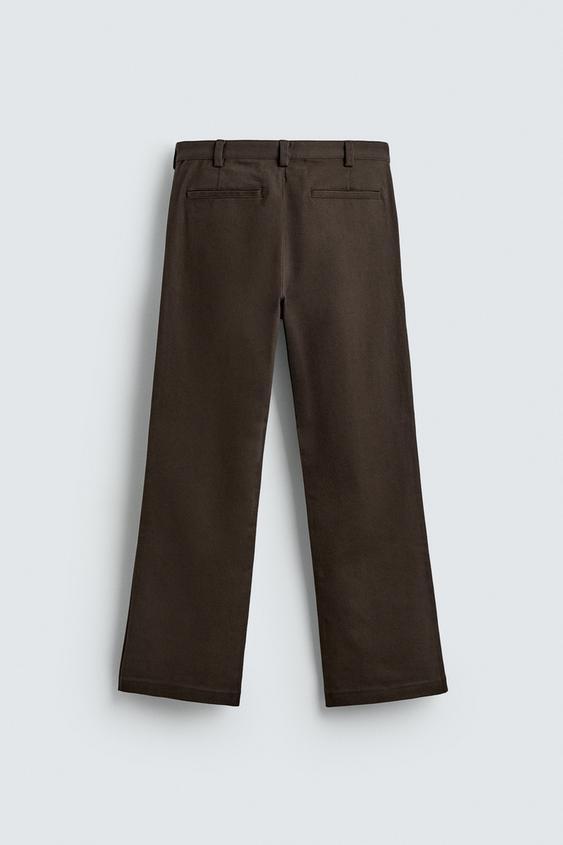 ZARA БРЮКИ FLARE FIT ИЗ ТВИЛА, ВИННЫЙ