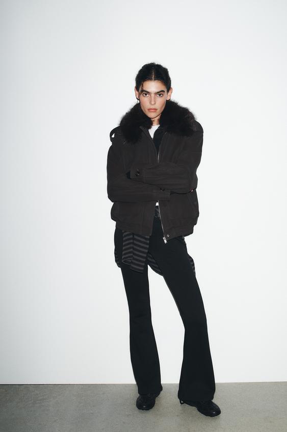 ZARA БРЮКИ FLARE ИЗ ФЛИСА, ЧЕРНЫЙ