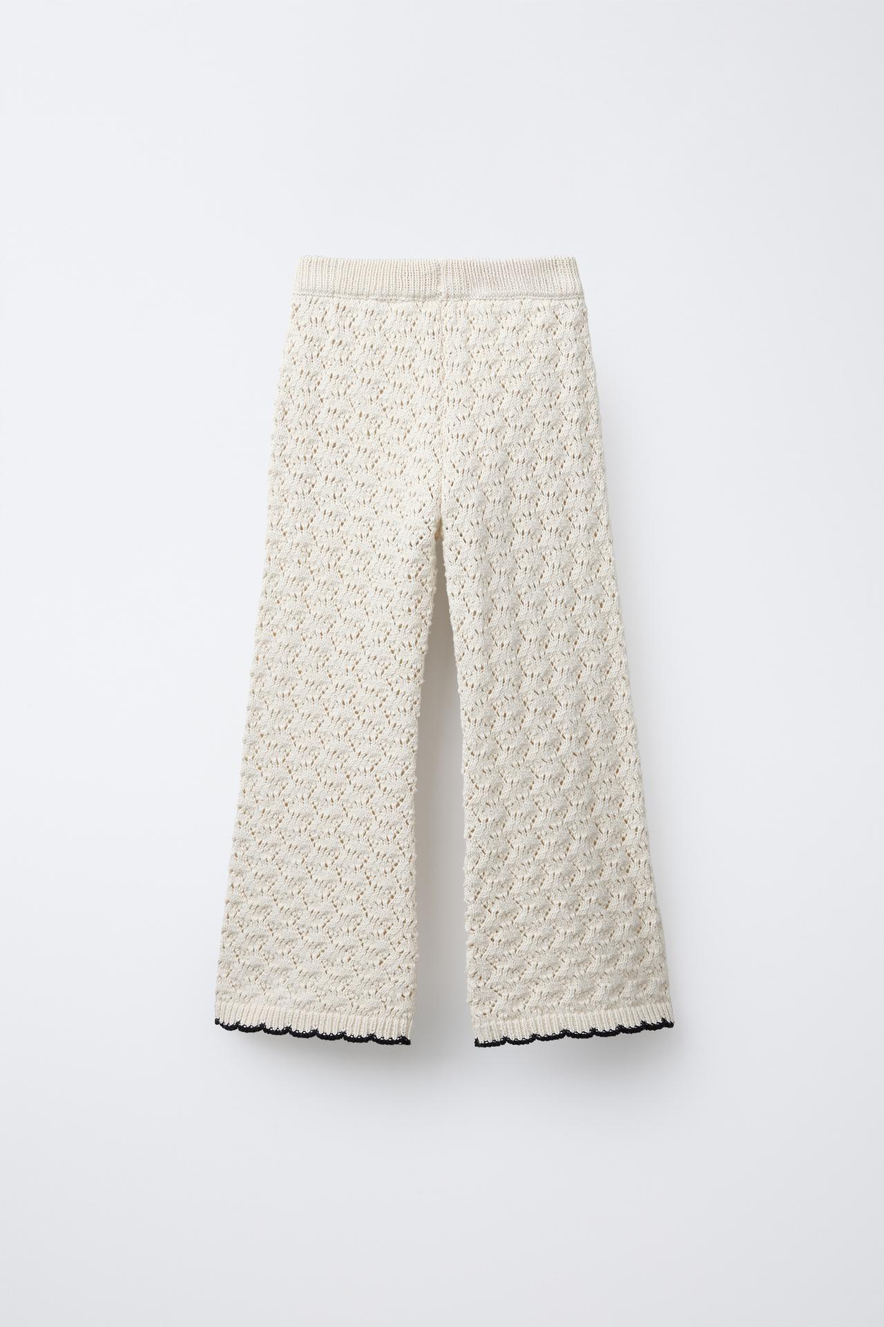 ZARA БРЮКИ FLARE ИЗ КРУЖЕВА КРОШЕ, ЭКРЮ