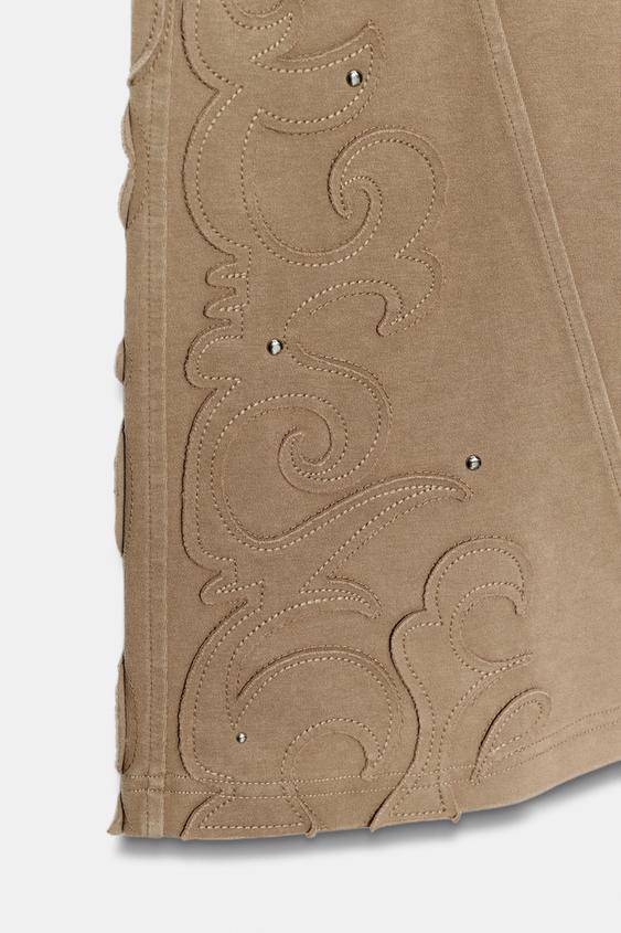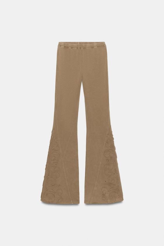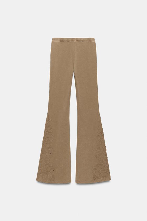 ZARA БРЮКИ FLARE С ЭФФЕКТОМ ПОТЕРТОСТИ И ЗАКЛЕПКАМИ, РЫЖЕВАТО-КОРИЧНЕВЫЙ