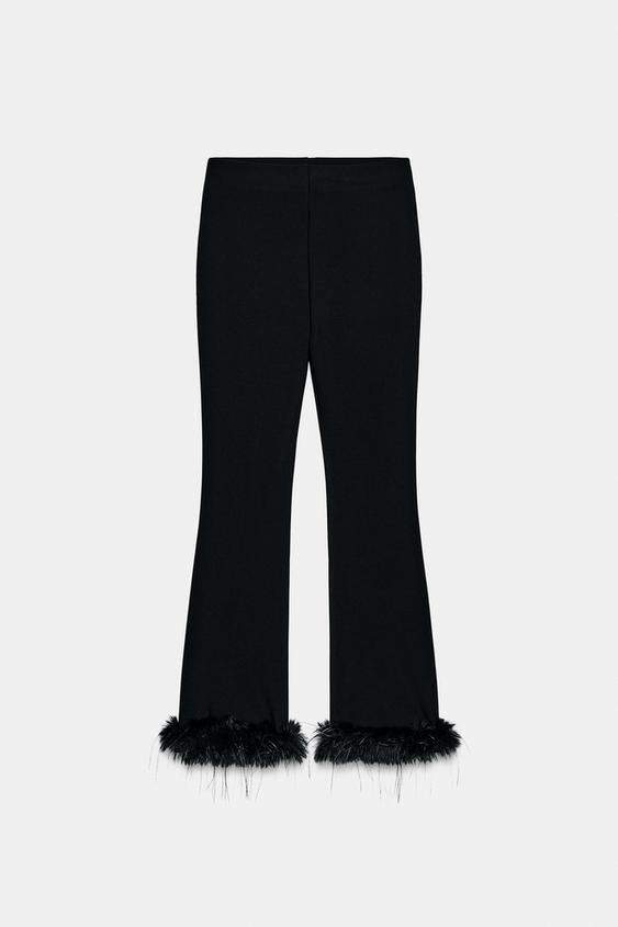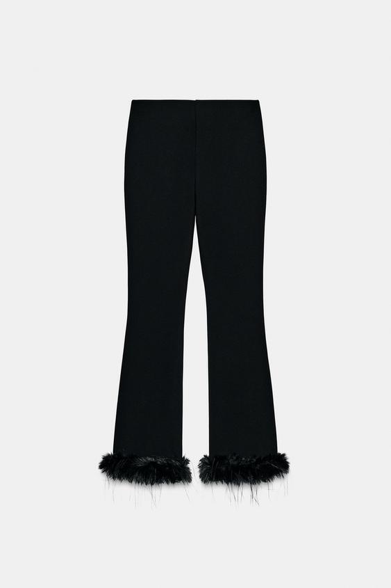 ZARA БРЮКИ FLARE С ОТДЕЛКОЙ ИЗ ИСКУССТВЕННОГО МЕХА, ЧЕРНЫЙ