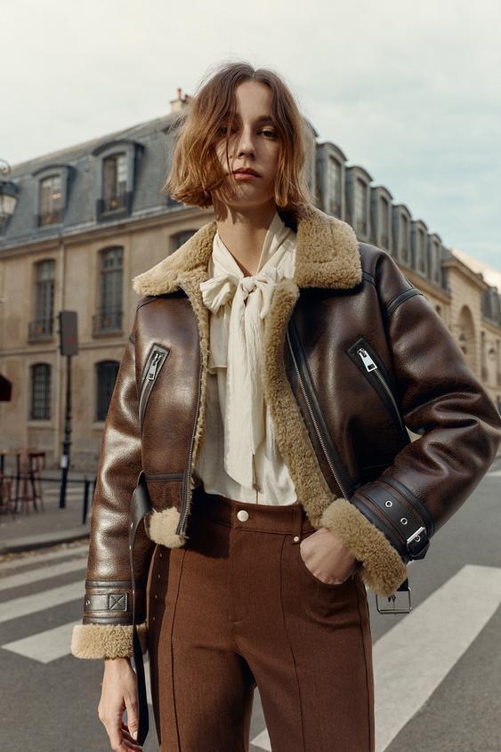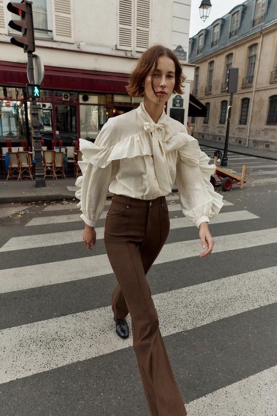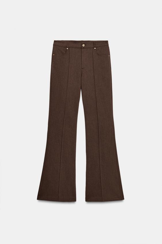 ZARA БРЮКИ FLARED С ВЫСОКОЙ ПОСАДКОЙ, КОРИЧНЕВЫЙ
