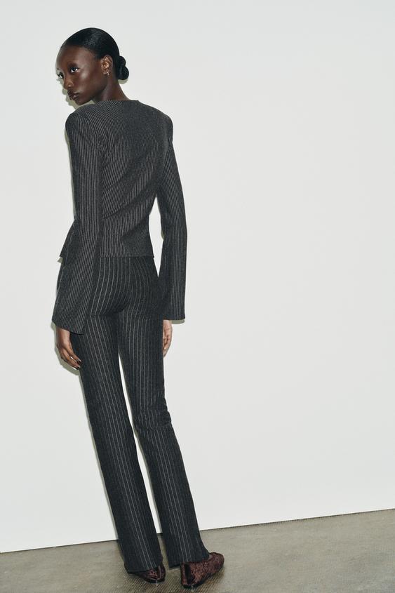 ZARA БРЮКИ FLARED В ТОНКУЮ ПОЛОСКУ, ПОЛОСКИ
