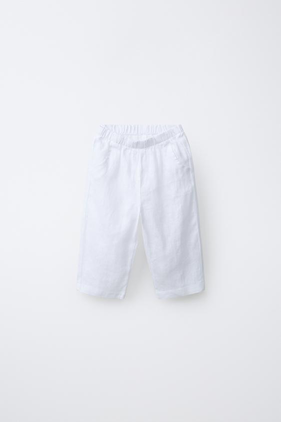 ZARA БРЮКИ ИЗ 100% ЛЬНА, БЕЛЫЙ