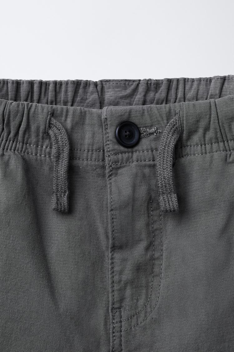 Брюки с эластичным поясом, застежкой на пуговицу и регулируемыми шнурками спереди. Передние карманы и задние накладные карманы с застежкой на пуговицу.