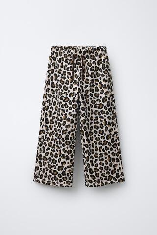 ZARA БРЮКИ ИЗ ФЛИСА С АНИМАЛИСТИЧЕСКИМ ПРИНТОМ, РЫЖЕВАТО-КОРИЧНЕВЫЙ