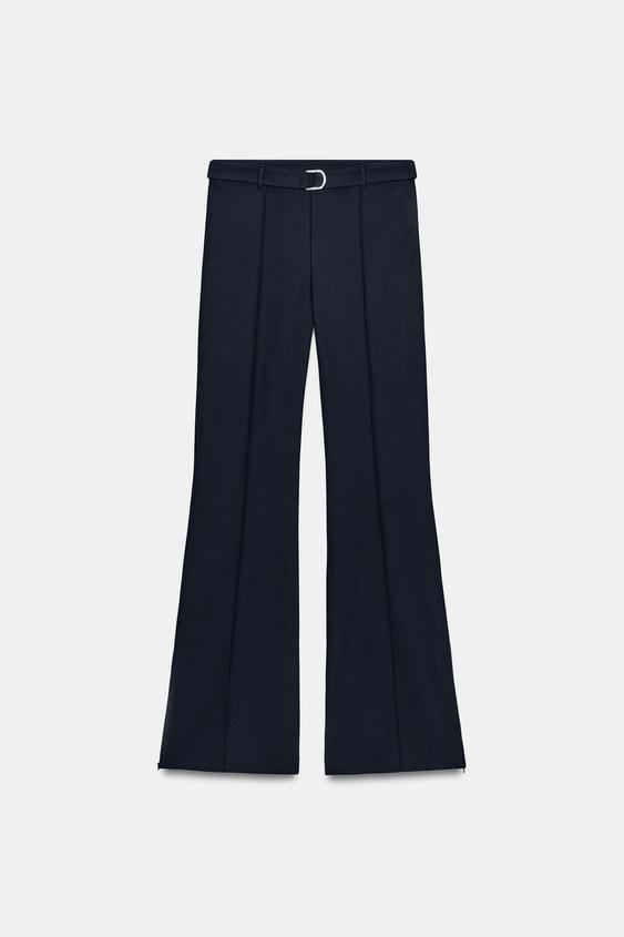 ZARA БРЮКИ ИЗ КРЕПА С ПОЯСОМ, МОРСКОЙ СИНИЙ
