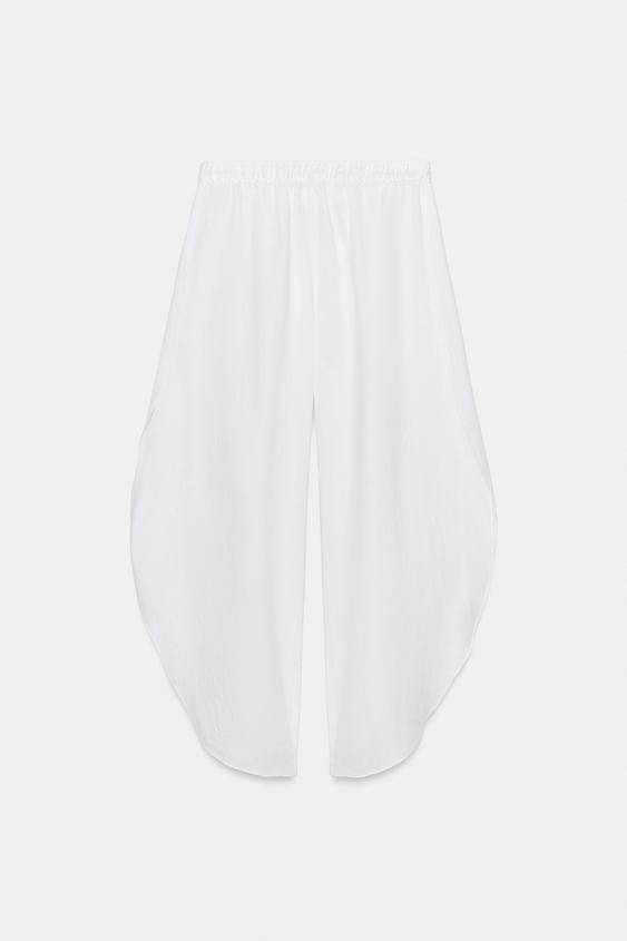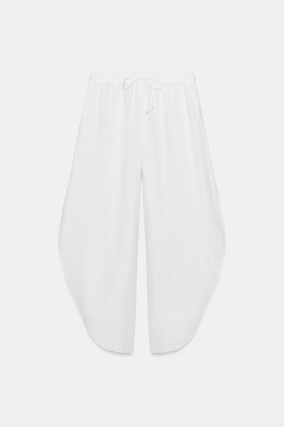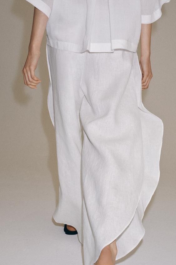 ZARA БРЮКИ ИЗ ЛЬНА С РАЗРЕЗАМИ — ZW COLLECTION, БЕЛЫЙ