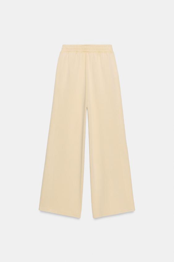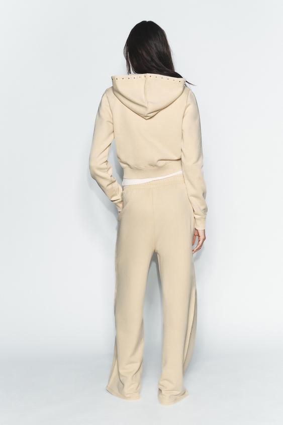 ZARA БРЮКИ ИЗ МЯГКОЙ ТКАНИ С ЭФФЕКТОМ ПОТЕРТОСТИ И ЗАКЛЕПКАМИ, ЦВЕТ СЛИВОЧНОГО МАСЛА