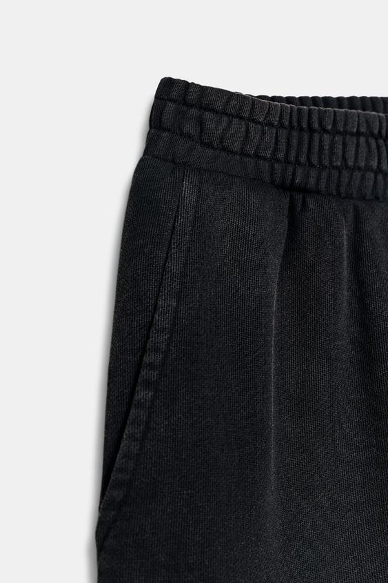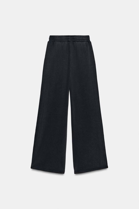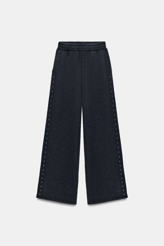 ZARA БРЮКИ ИЗ МЯГКОЙ ТКАНИ С ЭФФЕКТОМ ПОТЕРТОСТИ И ЗАКЛЕПКАМИ, УГОЛЬНЫЙ