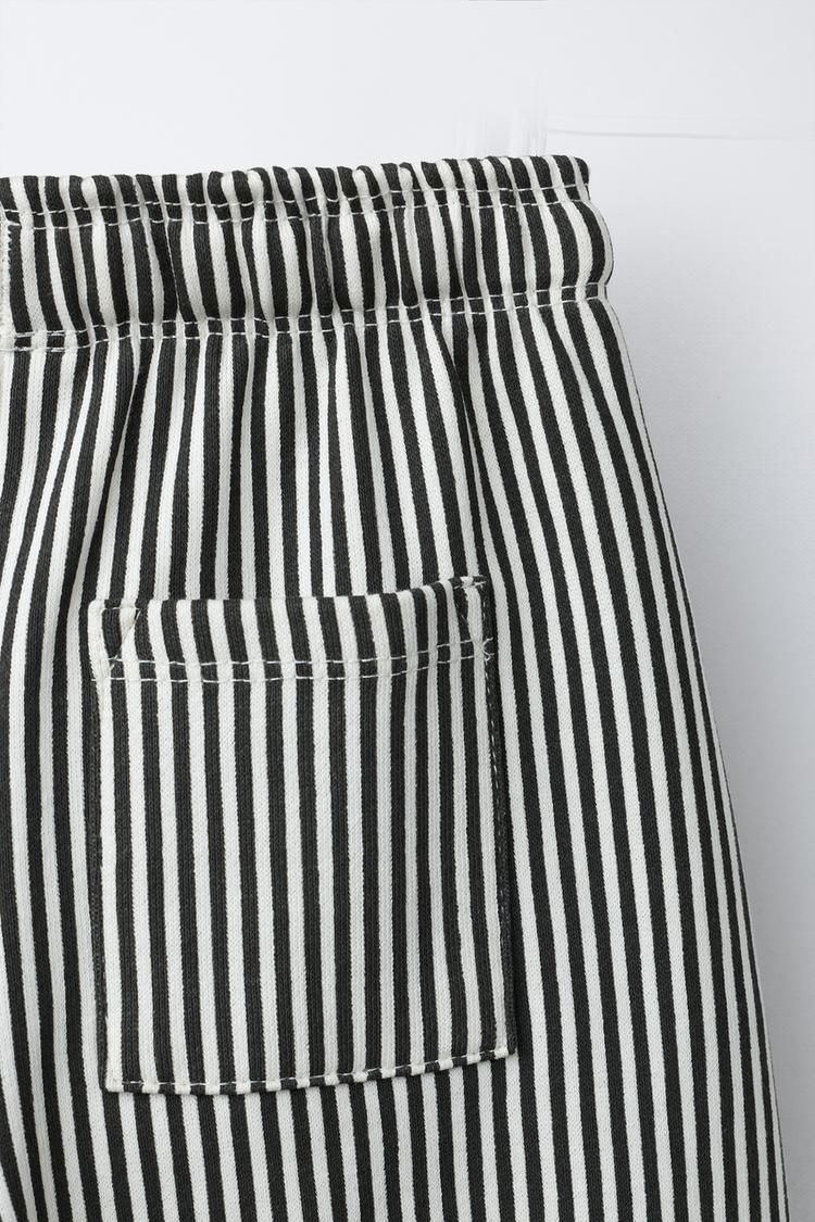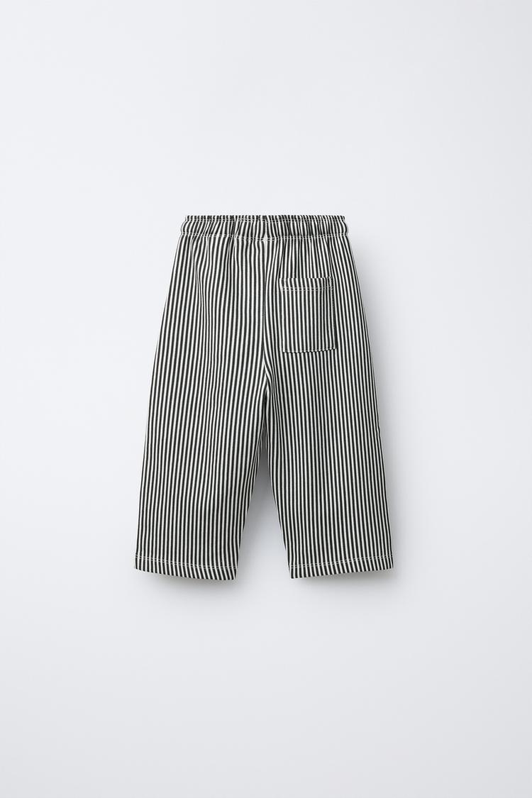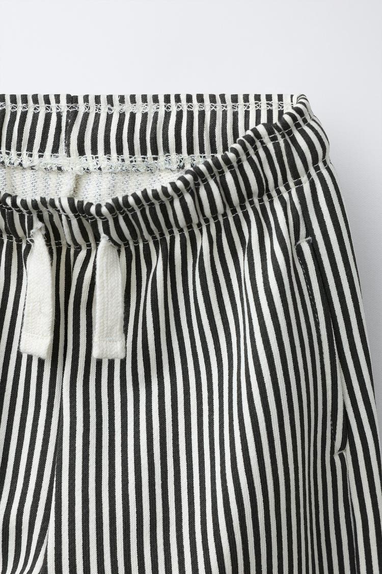 ZARA БРЮКИ ИЗ МЯГКОЙ ТКАНИ В ПОЛОСКУ, ЭКРЮ/ЧЕРНЫЙ