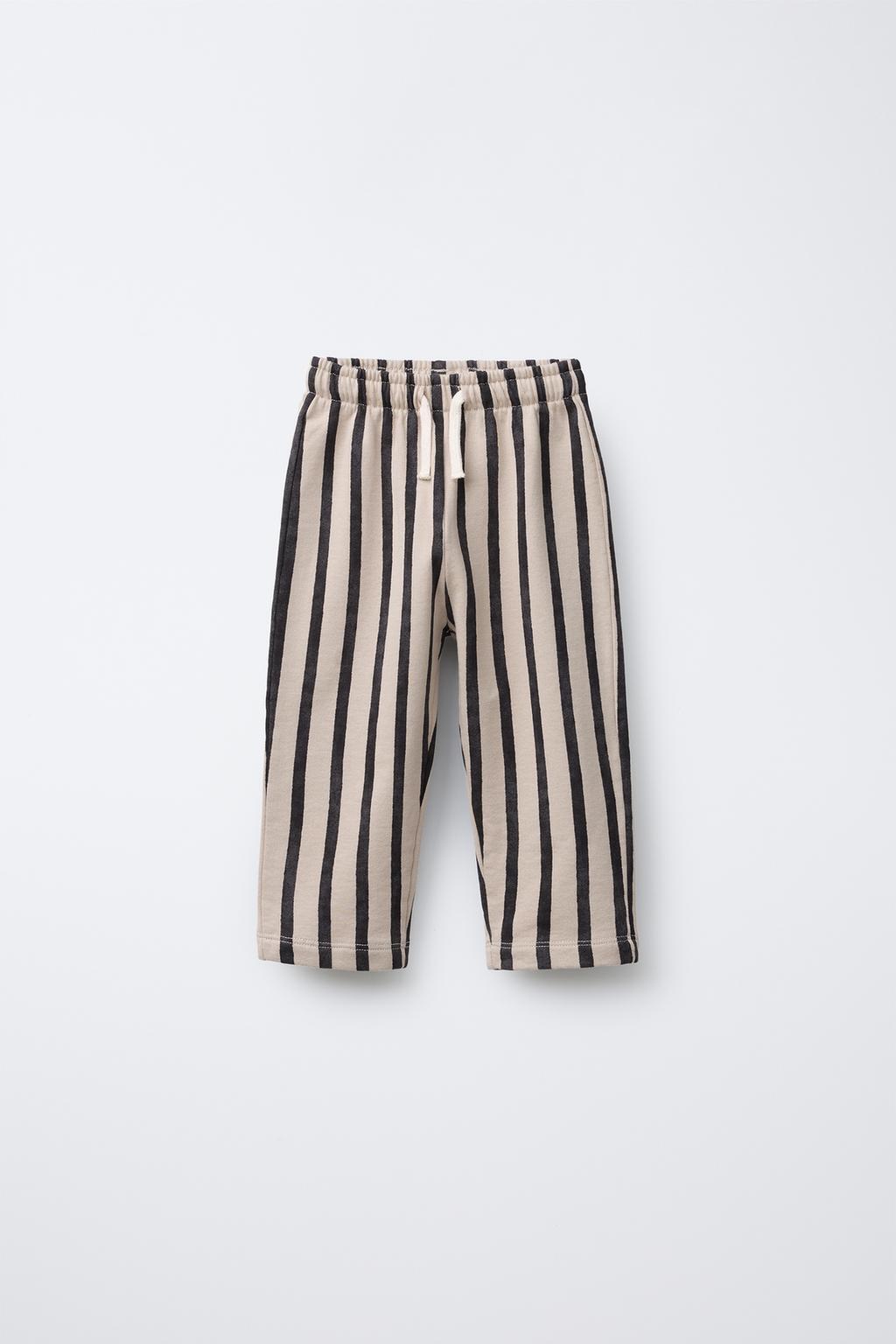 ZARA БРЮКИ ИЗ МЯГКОЙ ТКАНИ В ПОЛОСКУ С ПРЯМЫМИ ШТАНИНАМИ, ПЕСОЧНЫЙ/ЧЕРНЫЙ