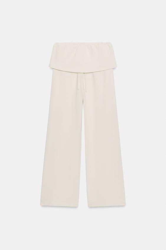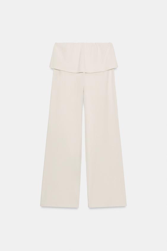 ZARA БРЮКИ ИЗ ПЛОТНОГО ХЛОПКА С ПОЯСОМ-КУШАКОМ, ЭКРЮ