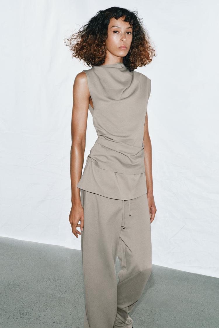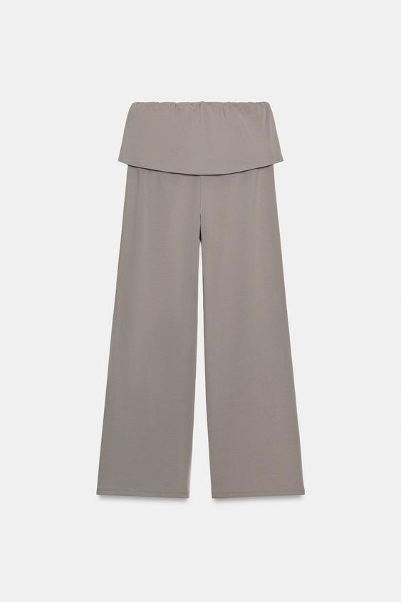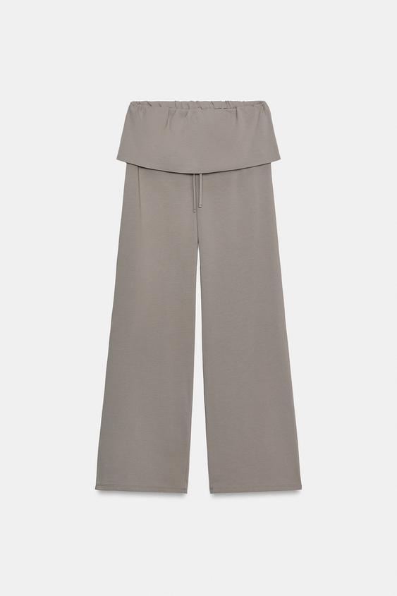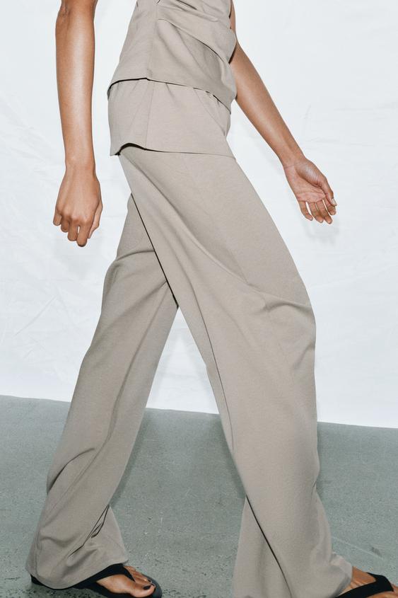 ZARA БРЮКИ ИЗ ПЛОТНОГО ХЛОПКА С ПОЯСОМ-КУШАКОМ, СЕРО-СИНИЙ