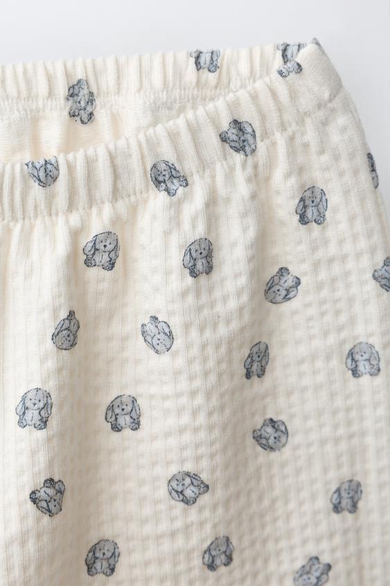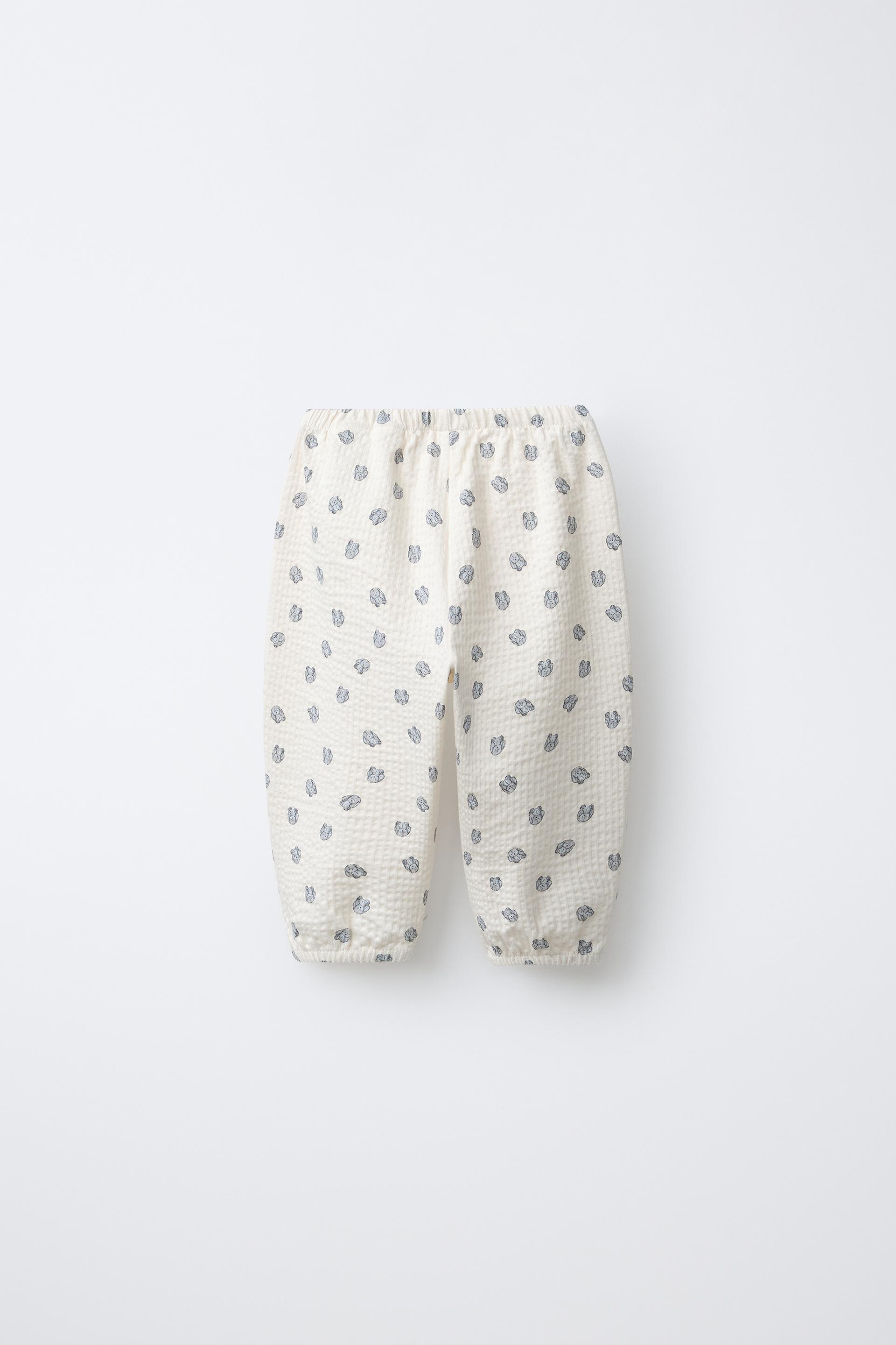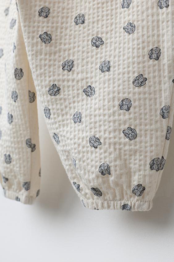 ZARA БРЮКИ ИЗ РЕЛЬЕФНОЙ ТКАНИ С ПРИНТОМ «КРОЛИКИ», ЭКРЮ