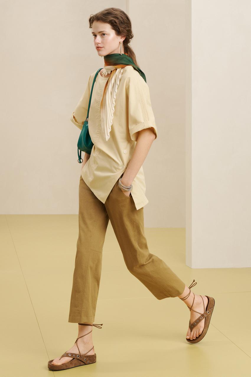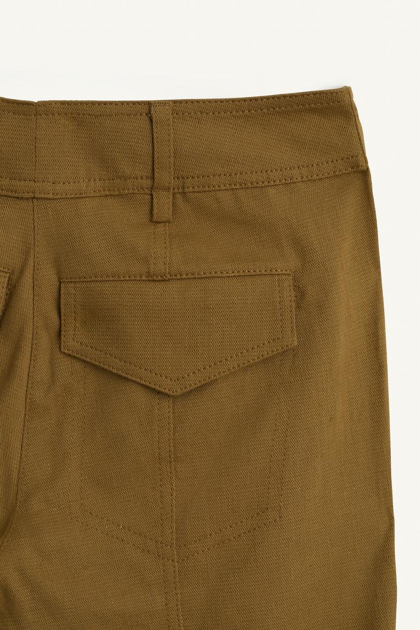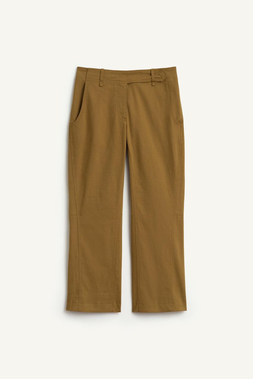 ZARA БРЮКИ ИЗ СМЕСИ ХЛОПКА И ЛЬНА СО СРЕДНЕЙ ПОСАДКОЙ, ХАКИ