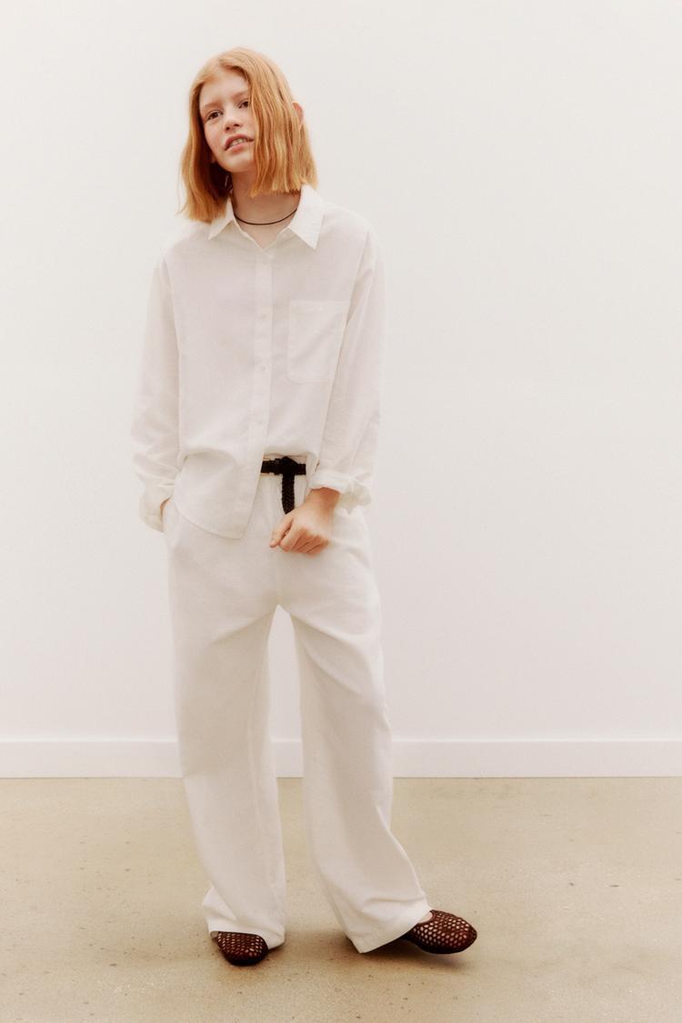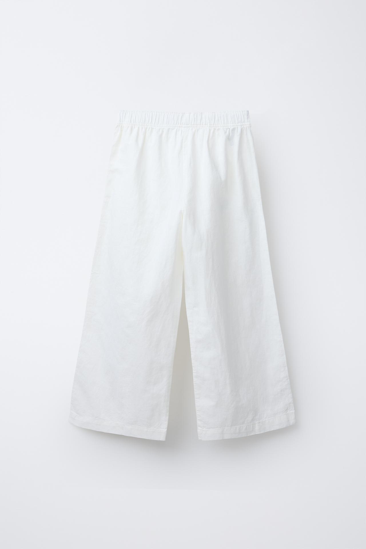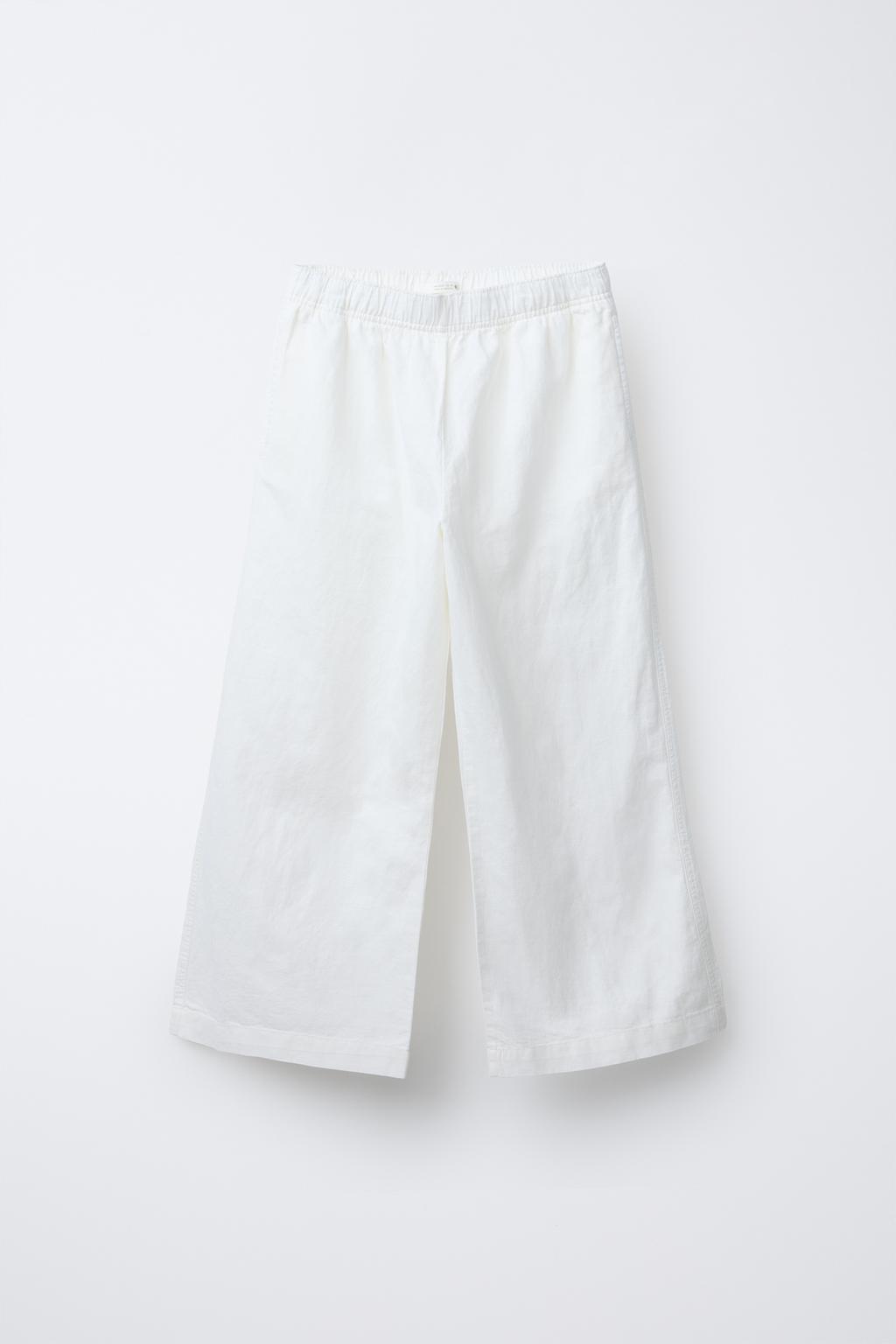 ZARA БРЮКИ ИЗ СМЕСОВОГО ЛЬНА С ШИРОКИМИ ШТАНИНАМИ, БЕЛЫЙ