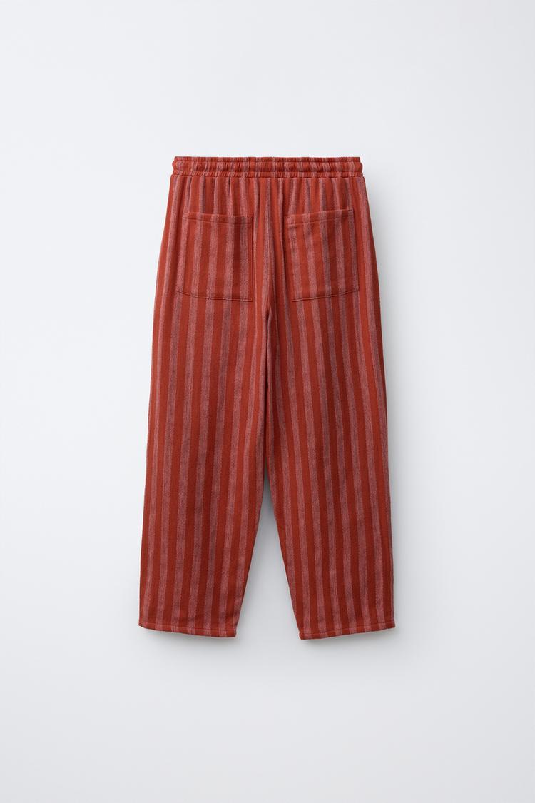 ZARA БРЮКИ ИЗ СМЕСОВОГО ЛЬНА В ПОЛОСКУ, ТЕМНО-РОЗОВЫЙ