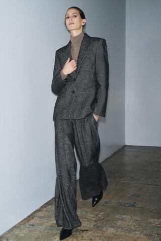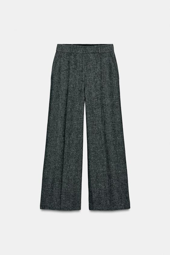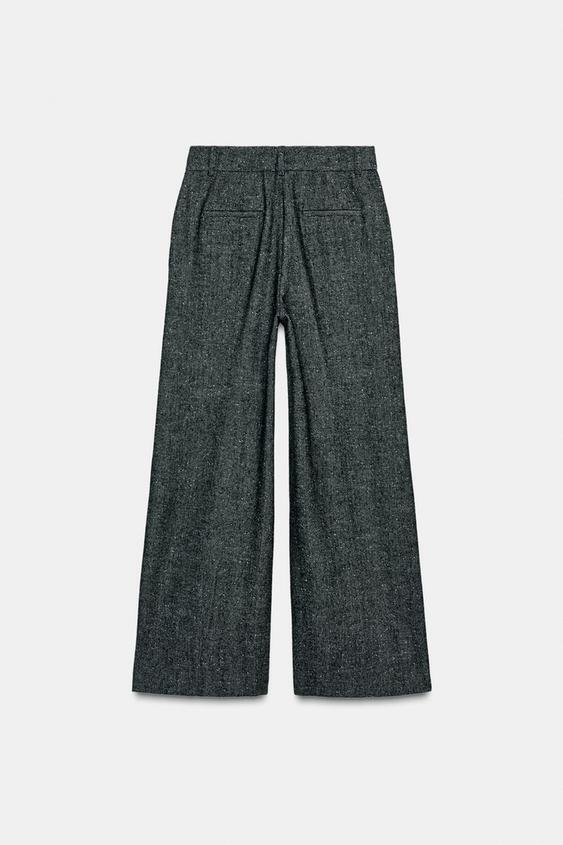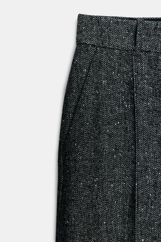 ZARA БРЮКИ ИЗ СМЕСОВОЙ ШЕРСТИ — ZW COLLECTION, ЧЕРНЫЙ/БЕЛЫЙ