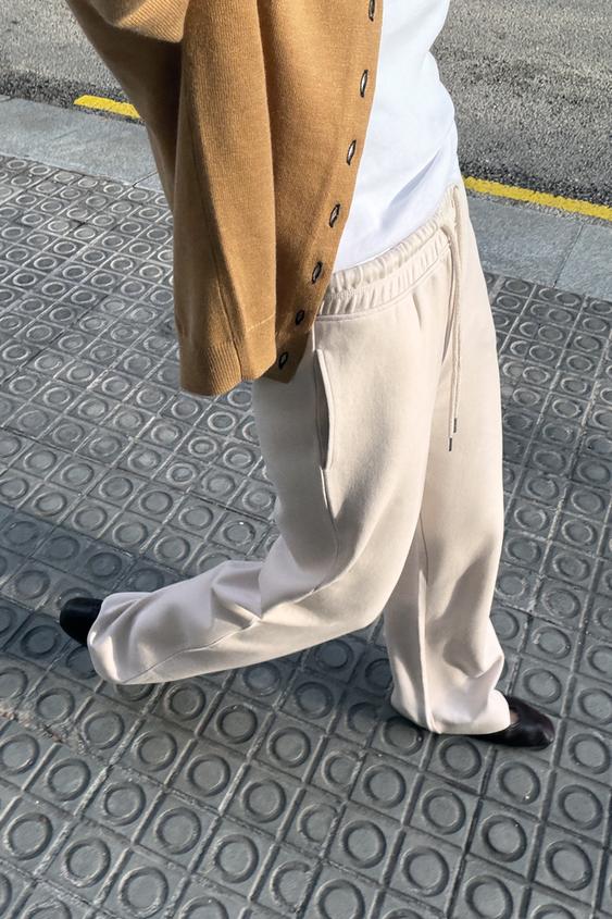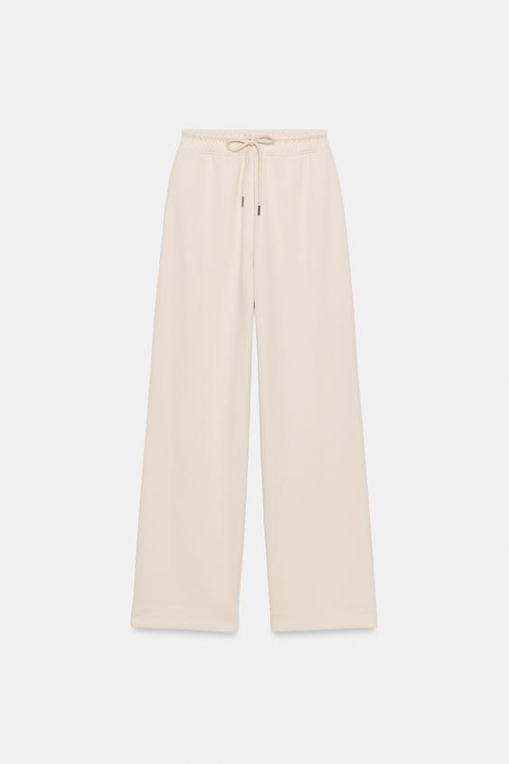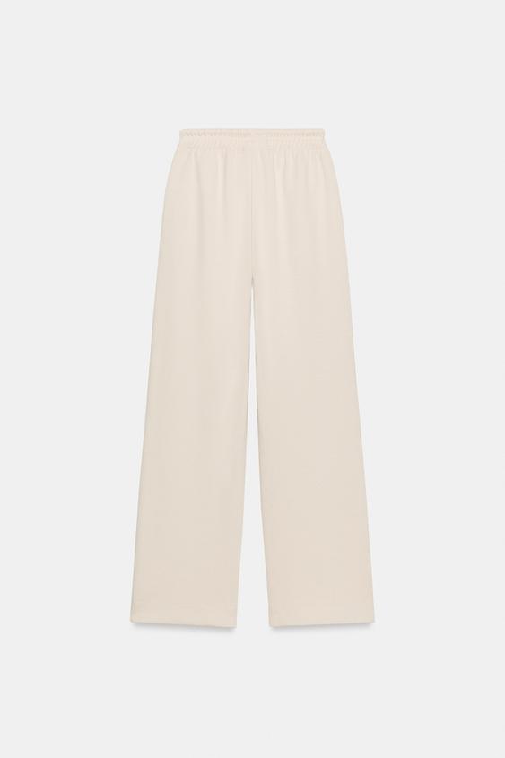ZARA БРЮКИ ИЗ ТРИКОТАЖА ИНТЕРЛОК С ЭФФЕКТОМ ПОТЕРТОСТИ, ЭКРЮ