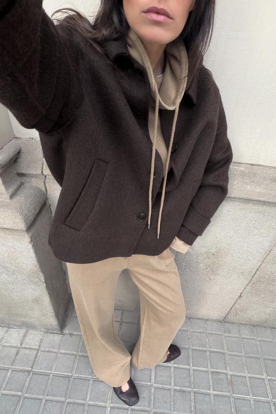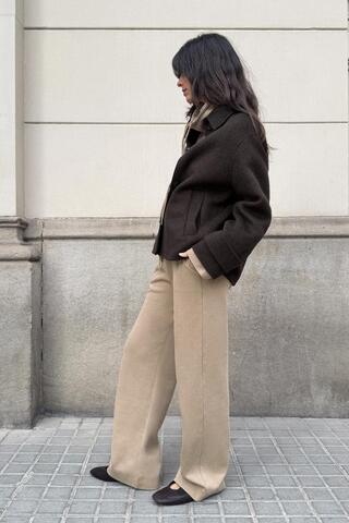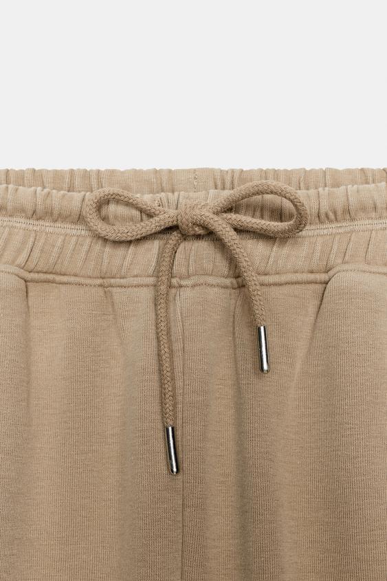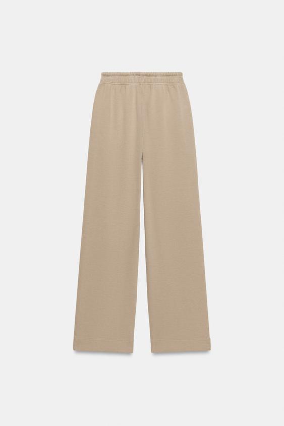 ZARA БРЮКИ ИЗ ТРИКОТАЖА ИНТЕРЛОК С ЭФФЕКТОМ ПОТЕРТОСТИ, СЕРО-КОРИЧНЕВЫЙ