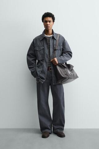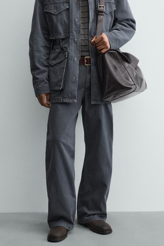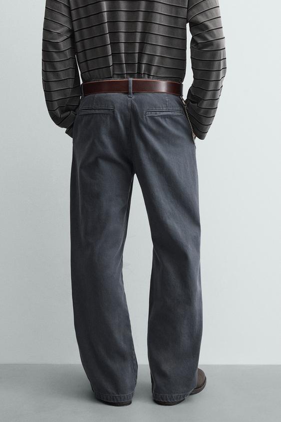 ZARA БРЮКИ ИЗ ВАРЕНОГО ХЛОПКА, СВЕТЛЫЙ ИНДИГО