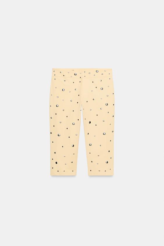 ZARA БРЮКИ КАПРИ С ЗАКЛЕПКАМИ, ПЕРСИКОВЫЙ