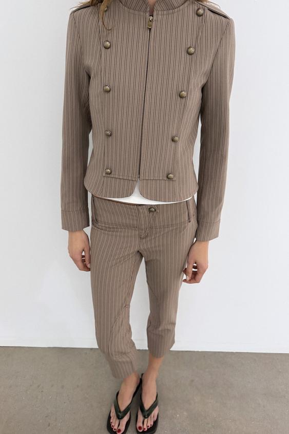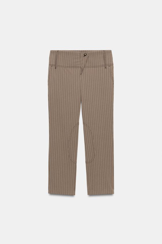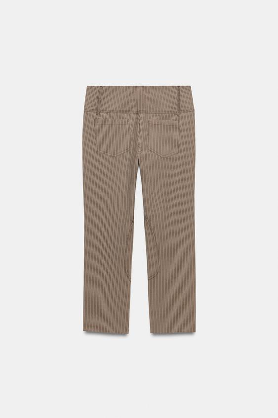 ZARA БРЮКИ-КАПРИ В ТОНКУЮ ПОЛОСКУ, СВЕТЛЫЙ РЫЖЕВАТО-КОРИЧНЕВЫЙ
