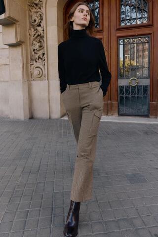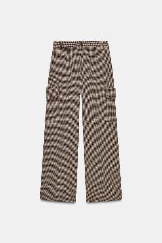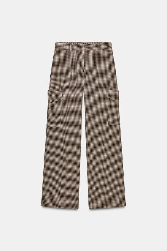 ZARA БРЮКИ КАРГО «ГУСИНАЯ ЛАПКА», ЧЕРНЫЙ/КОРИЧНЕВЫЙ